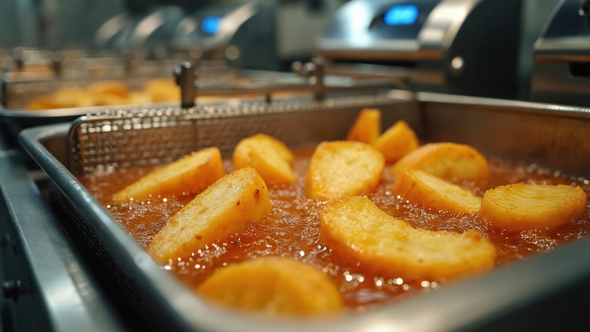 First, you simmer your potatoes for 20 to 30 minutes then put them in the freezer. Second, fry the chips for about five minutes at around 130C then put them back in the freezer to cool again. Finally, put them in the deep fryer for approximately seven minutes until crunchy and golden.